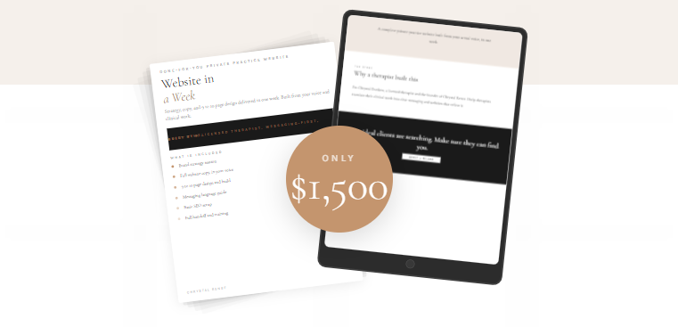 COMPLETE WEBSITE IN ONE WEEK | NO VAGUE COPY, NO GENERIC TEMPLATES | MESSAGING FIRST WEBSITE DESIGN | CLARITY FIRST. ALWAYS | BUILT BY A THERAPIST |